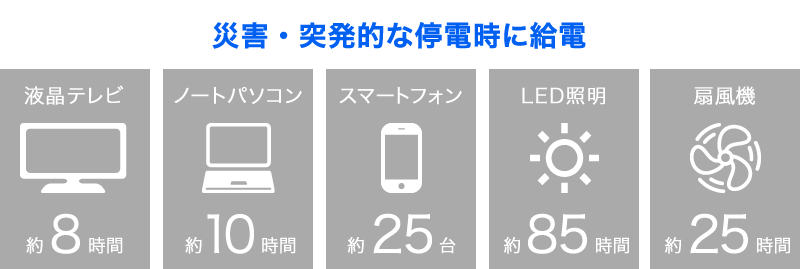 | DC出力 | USB・A×2:5V-3AUSB・C×1:5V-3Aシガーソケット×1:12V-10A |