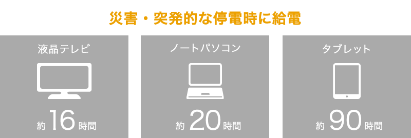 ◆ 非常時は充電しながら使用可能(電池残量が少ないと出力が制限される)